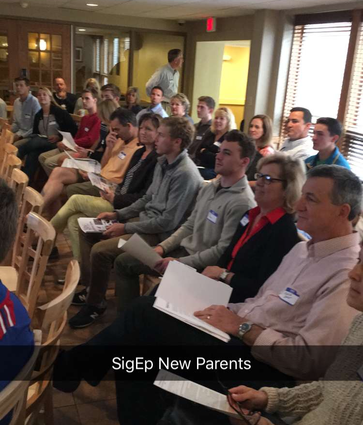 Parents weekend is held early fall and is a time for all SigEp parents to come up to Lawrence and spend the day with their son. Activities during this day include: SigEp Annual Scholarship Auction, BBQ cookout, KU Football game, Moms & Dads club meetings.